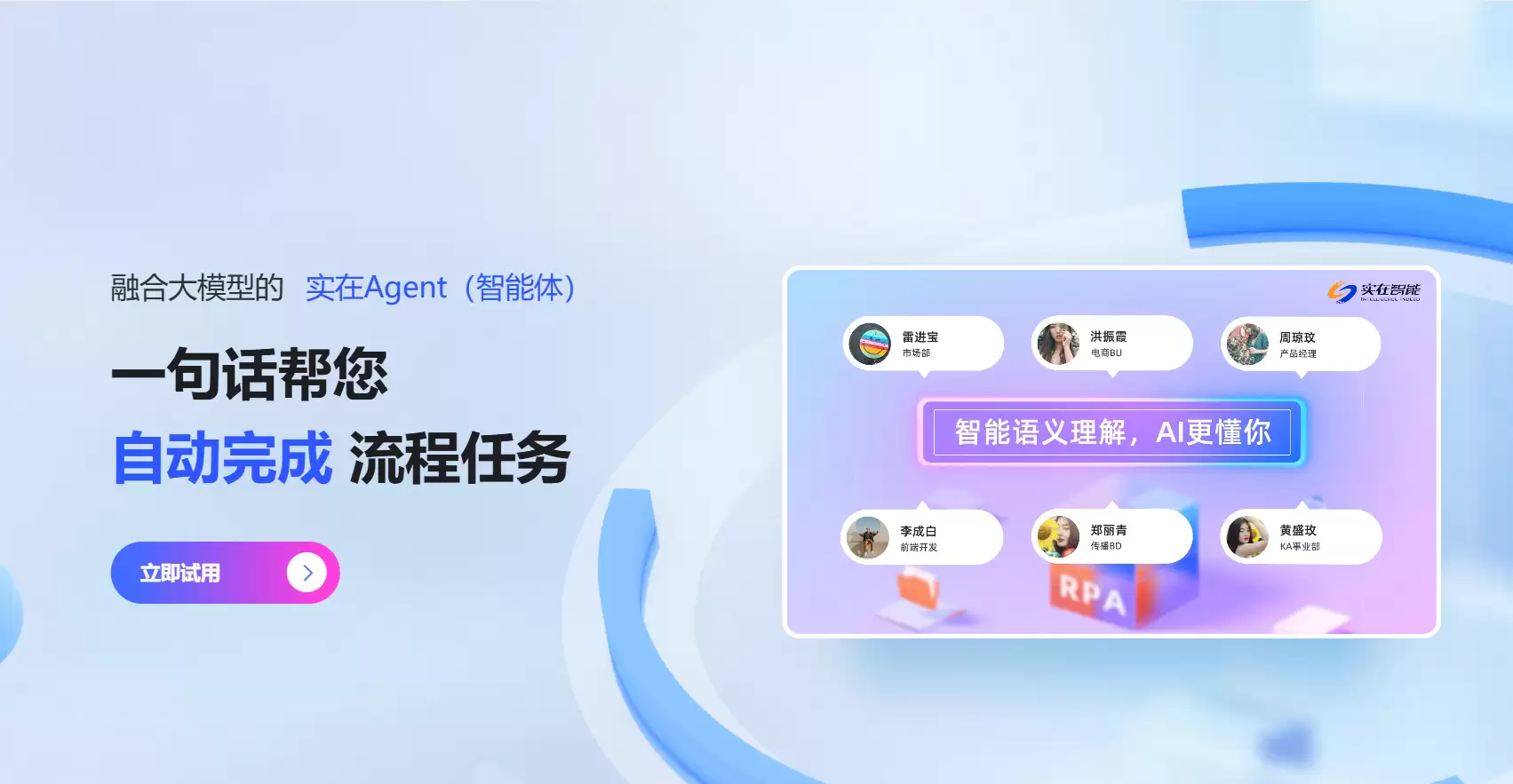 另一方面,如何降低使用门槛、让智能体更“接地气”,成为产品突破的关键。行业正努力将前沿的AI能力封装成更易用、更实用的工具。例如,实在智能推出的实在Agent,就体现了这一方向的思考。它被定位为从RPA进化而来的第三代数字员工,其设计理念直接回应了前述的诸多挑战。
