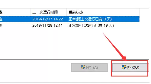 第三步: 点击“优化”后,系统会弹出一个名为“优化驱动器”的对话框。没错,这里就是Windows 10专门用来进行磁盘碎片整理的核心操作界面。