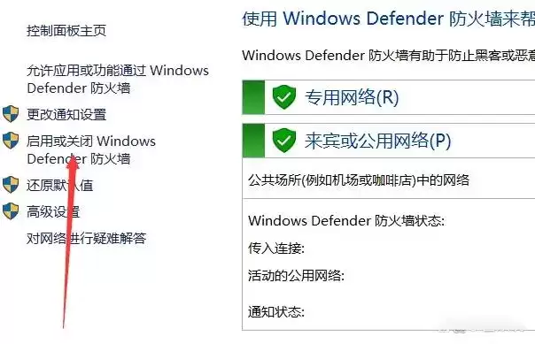 在“系统和安全”窗口里,各项功能一目了然。我们需要找到的是“Windows Defender 防火墙”相关选项,请点击“启用或关闭 Windows Defender 防火墙”。