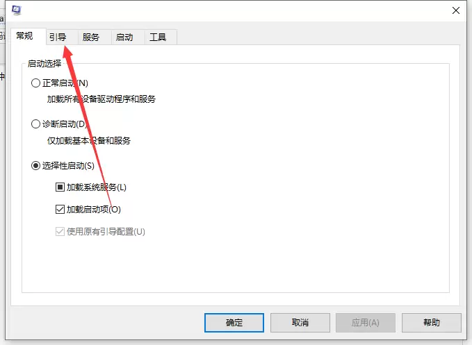第二步:这会打开“系统配置”窗口。在这里,你需要将目光移到顶部的选项卡,点击进入【引导】设置。