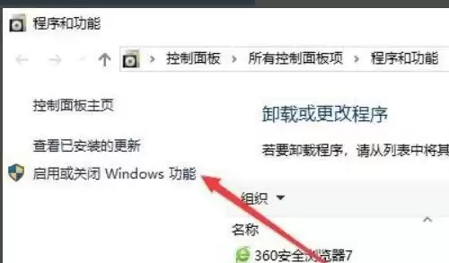 接下来,在打开的“程序和功能”窗口中,注意看左侧的边栏。这里有一个关键选项——“启用或关闭Windows功能”,点击这个链接。