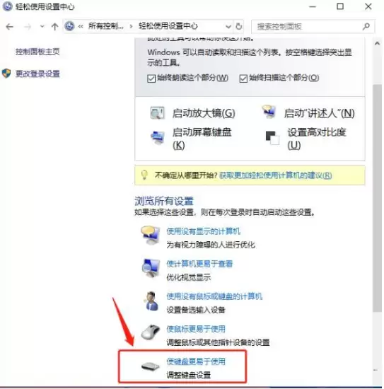 在轻松使用设置中心页面,你会看到一系列优化选项。请找到 “使键盘更易于使用” 这一项,并点击进入。