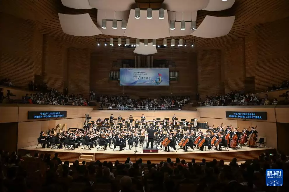 4月26日,“中银之声”2026天津音乐节开幕式演出《琴韵海河·乐动华章》在天津大剧院举行。