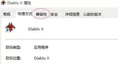 这时会弹出一个属性设置窗口。注意看窗口顶部的一排标签,点击进入“兼容性”这个选项页。这里就是解决问题的关键所在。