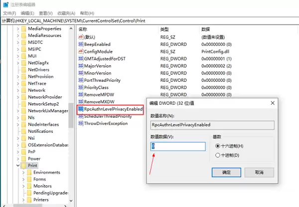 接着,双击这个新建的“RpcAuthnLevelPrivacyEnabled”值,将其“数值数据”修改为 0,并确保“基数”为“十六进制”,最后点击“确定”保存。