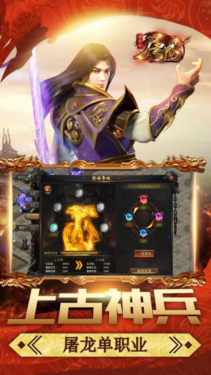 《屠龙单职业》赋予了玩家极高的自由度和策略深度。在实战中,你可以自选天赋技能进行切换,以应对不同战局。其最夺目的系统莫过于“英雄幻化”——通过打怪获取幻化卡,就能在战斗中变身成为实力恐怖的神话英雄,瞬间改变战局。游戏还加强了社交与策略性,行会之间可以互相进行情报刺探。此外,每件装备都拥有独特的外观设计,能直接改变角色形象,满足你的收藏与展示欲。