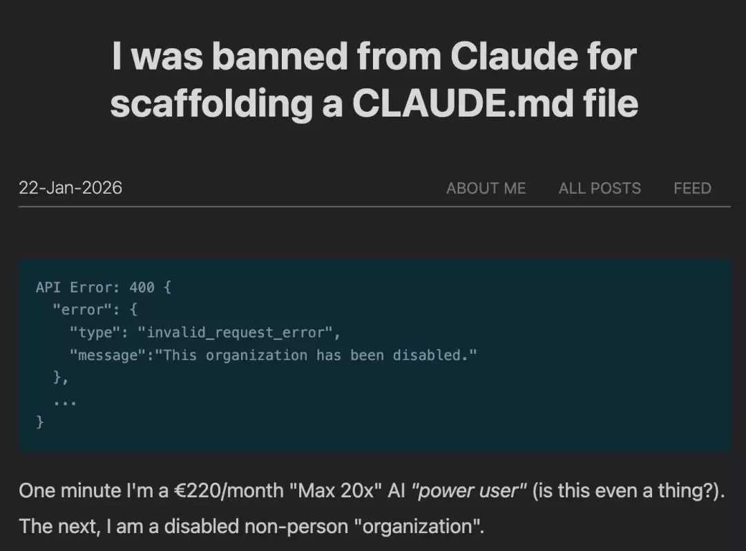答案很快变得清晰——问题不在于“你的”Claude,而是所有人的Claude,都被Anthropic一刀切地封禁了。