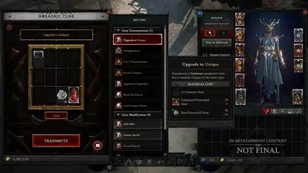 - 嬗变物品: 圣化系统的优化版,有概率使装备被“锁死”,无法再被改造。