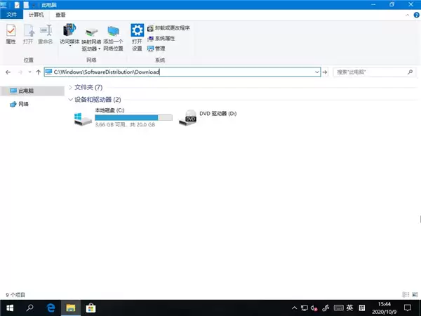 2、接下来是关键一步。在“此电脑”窗口顶部的地址栏里,直接输入这个路径:C:\Windows\SoftwareDistribution\Download,然后按回车键。这个文件夹就是微软商店下载文件的“大本营”。