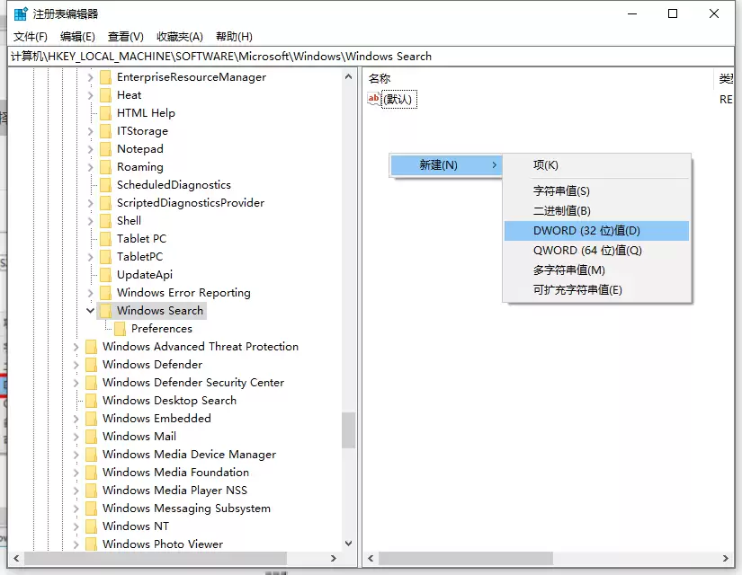 第三步,关键的一步来了。点开【Windows】项,看看它下面是否已经存在一个名为【Windows Search】的子项。如果没有,就需要手动新建一个:在【Windows】项上点击鼠标右键,依次选择【新建】->【项】,然后把新建的项命名为“Windows Search”。接着,选中这个新建的【Windows Search】项,在右侧窗格的空白处再次右键,选择【新建】->【DWORD (32位)值】,并将这个新值命名为“AllowCortana”。