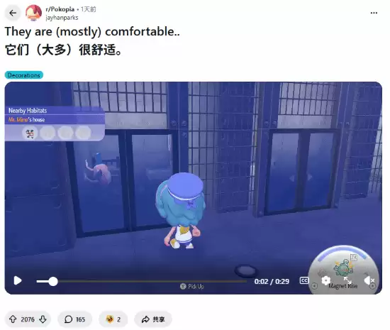 动森的“捕虫网敲头”更像是一种孩子气的、符号化的互动,其结果也是温和且可逆的。而Pokopia里这座具象化的监狱,则将玩家个人的负面情感——不喜欢、排斥、甚至可能是微小的掌控欲——通过高精度工具凝固成了一个持久存在的、针对特定对象的压迫性空间。这二者带来的感官冲击与道德体验,完全不可同日而语。