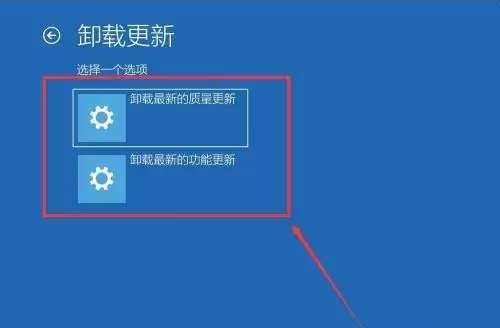 接下来,系统会让你选择卸载哪种类型的更新。这里有两个选项:“卸载最新的质量更新”和“卸载最新的功能更新”。