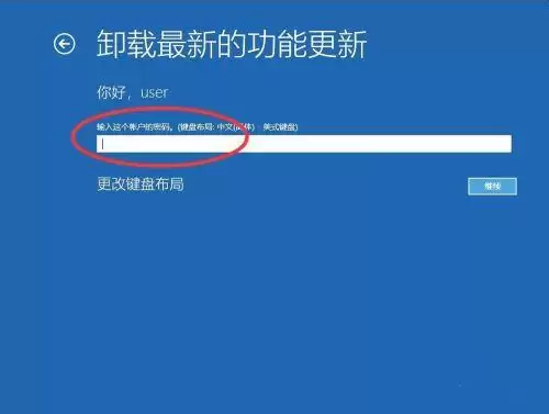 然后,输入该账户的密码。如果账户没有设置密码,直接留空不输入就行。输入完毕后,点击“继续”。