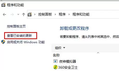 接下来,注意看窗口左侧的导航栏,点击“查看已安装的更新”这个链接。