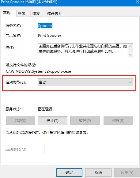 3、双击打开它的属性,把“启动类型”设置为 **自动**,然后点击“确定”。这样一来,系统每次启动都会自动运行这个服务,确保打印功能随时待命。