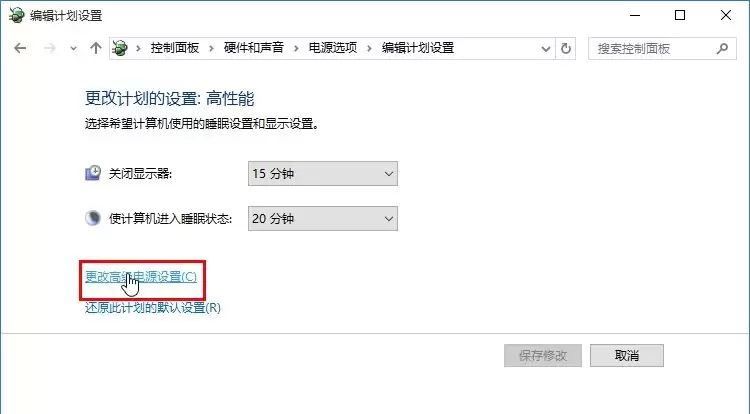 4. 进入计划设置编辑界面后,别被眼前的选项迷惑。关键操作是点击页面下方的“更改高级电源设置”。