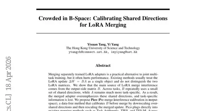 Pico的独特价值在于,它直指问题的根源——LoRA分解的内部结构。它并非发明一种新的合并算法,而是在合并前对B矩阵这一特定源头进行修正。正因它是一个预处理步骤,才能以“插件”形式兼容任何现有的合并方法。