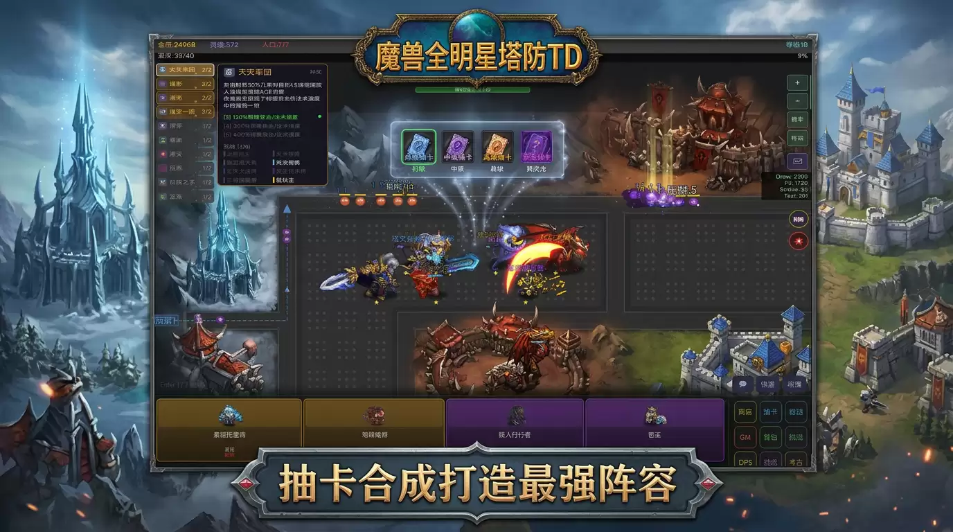 一句话概括:它主打的是原汁原味的War3塔防体验。游戏提供了多达64种史诗英雄供你选择,并且设计了“龙族”、“联盟”等十几种羁绊组合。这意味着,你的策略不仅在于英雄的摆放,更在于如何搭配阵容,激活强大的羁绊效果,从而应对一波波来袭的敌人。