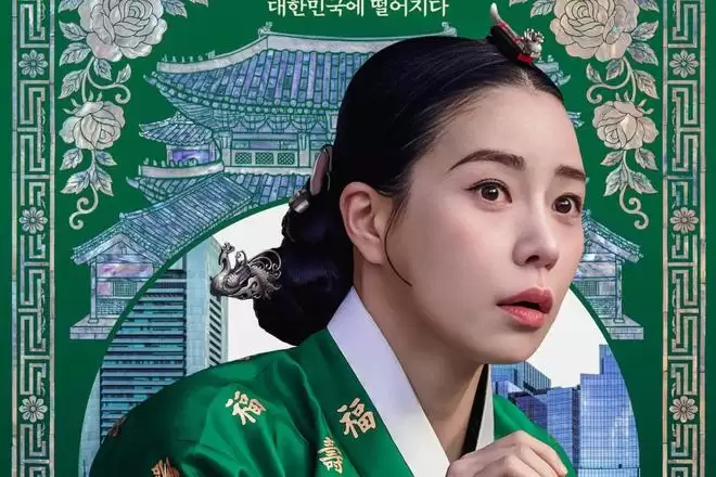 SBS全新力作的海报一经发布,便以其强烈的视觉冲突引发热议。画面中,林智妍所饰演的朝鲜时代经典反派角色姜丹心,竟被完整地“镶嵌”在一幅螺钿屏风画框之内,背景却是高楼林立的现代首尔街头。这种将古装人物强行置入当代都市景观的设计,制造出一种奇异的时空错位感,仿佛是被某种未知力量拖拽至2025年的超现实图景。