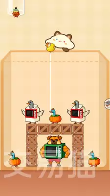 游戏节奏明快,单局时间短,对反应和预判的要求适中,上手毫无压力。它的一个有趣创新在于,融入了物理解谜机制——场景里堆满了各种道具和支撑棍。玩家需要做的是,判断整个结构的关键支撑点,然后在恰当时机精准地抽掉那根“关键棍子”,从而引发连锁坍塌,达成消除效果。这个过程既有趣味性,又需要一点轻度的思考。