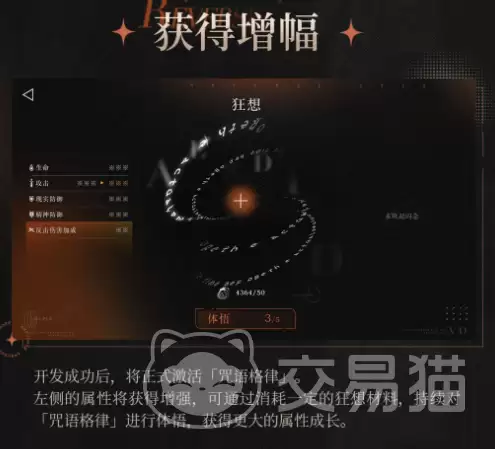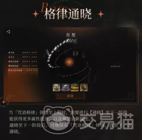 整个系统流程清晰分为三个阶段。第一阶段是“开发”:消耗专属材料激活初始的咒语格律,立刻就能提升角色的基础属性。第二阶段进入“体悟”:持续投入资源,可以提升当前格律的层级,让属性增幅的幅度进一步扩大。第三阶段则是质变的关键——“通晓”:当体悟达到上限后触发,格律实现升阶。这不仅会增强原有加成,还会解锁全新的属性条目。每完成一次通晓,角色就迈入了一个更高阶的成长周期。