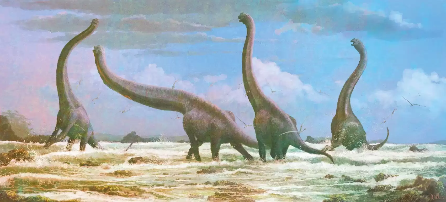 在史前背景下,如何运用这些庞然大物是个很有意思的课题。作为巨型野兽,你可以让一群Giraffatitan(长颈巨龙)的身影出现在遥远的地平线上,成为队伍长途跋涉的背景。这些生物对钝击、穿刺和挥砍伤害具有抗性,并且无法被击倒或麻痹。