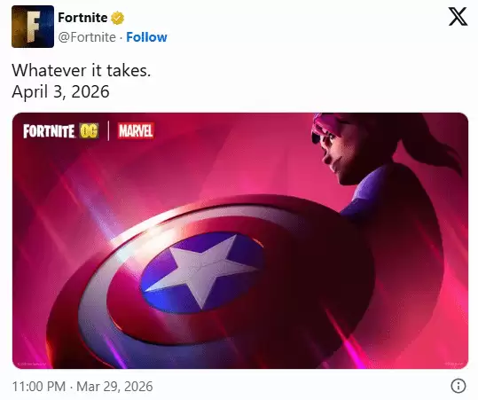 Epic Games最近的动作,把所有老玩家的记忆都拉回了2018年。官方社交媒体释出一张“彩虹爆炸妹”手持美国队长盾牌的图片,配文就一句话:“Whatever it takes”(不惜一切代价),并附上日期:2026年4月3日。这几乎是明示,那个让无数人热血沸腾又咬牙切齿的无限手套模式,要在阔别七年后重返战场了。