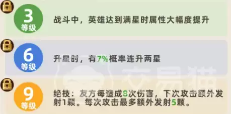 随着星级提升,孙尚香的伤害能力会产生质变。满星状态下,被动真实伤害提升至目标最大生命值的6%,并且移除了攻击力比例的上限限制,伤害潜力大幅释放。再看等级成长:达到6级时,会解锁一个进阶机制——友方每累计造成8次伤害,孙尚香的下一次普攻就能额外发射一枚炮弹(当然,仍受单次最多5枚的限制);12级时天赋升级,基础炮弹附带的真实伤害提升至目标最大生命值的4%,上限也同步提高到攻击力的80%;满星后,这个数值会进一步强化为8%,上限达到攻击力的160%。