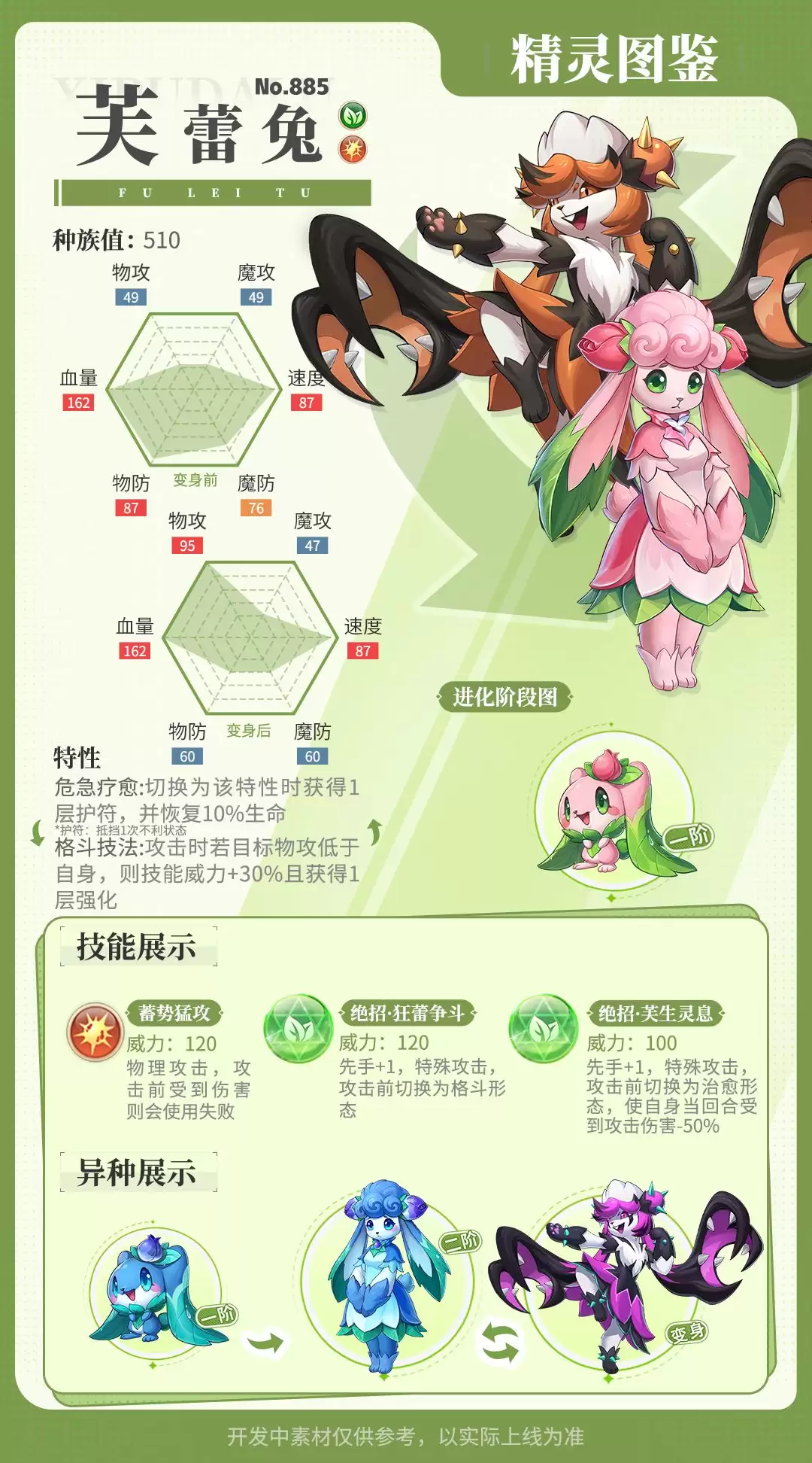 (上图直观展示了芙蕾兔的技能与形态设定,可以结合上文进行参考。)