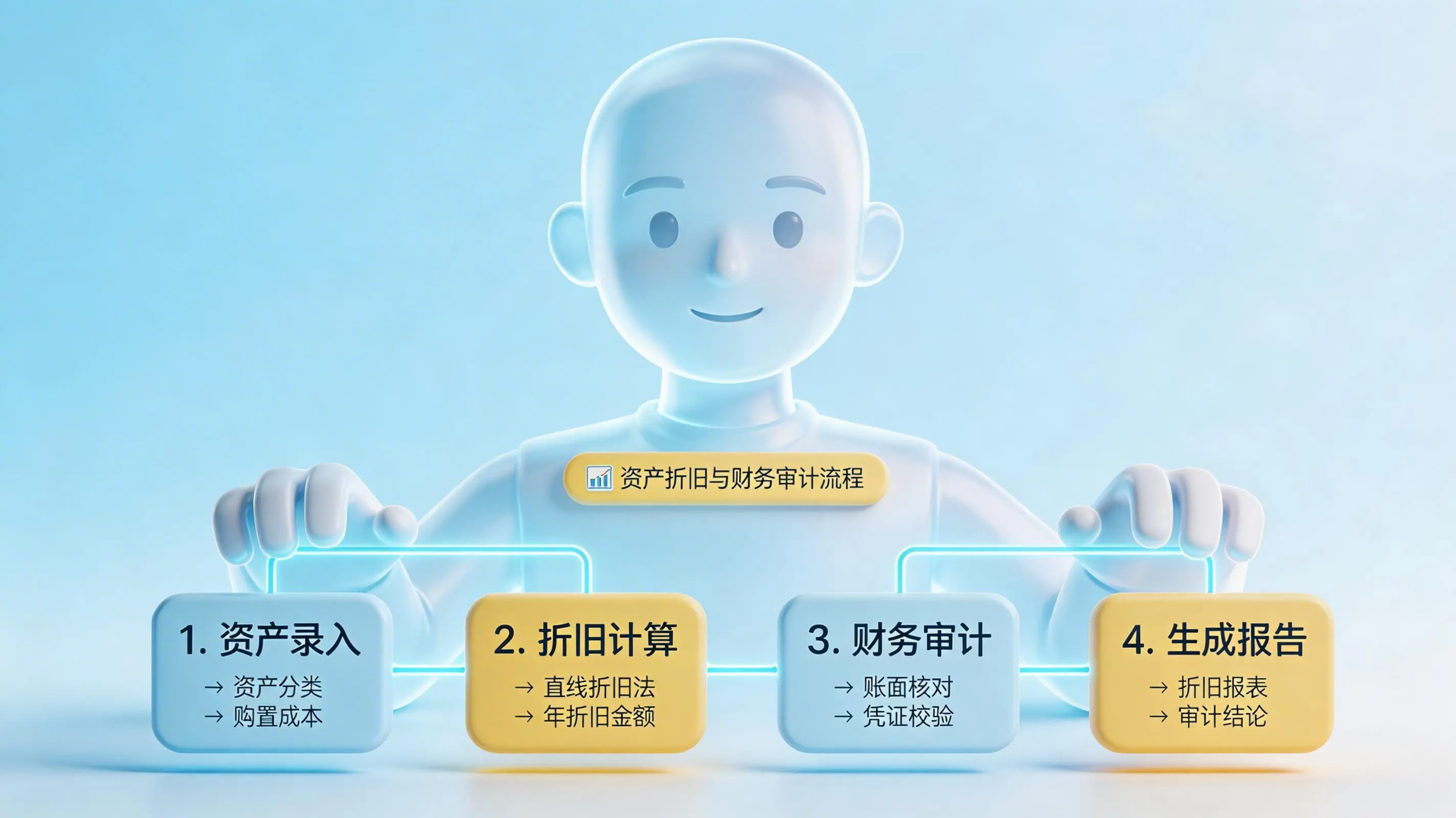 首先,在集团ERP固定资产折旧环节,原先每月需要人工操作约50分钟的重复性任务被完全替代,不仅效率提升,更确保了折旧凭证生成的100%准确。