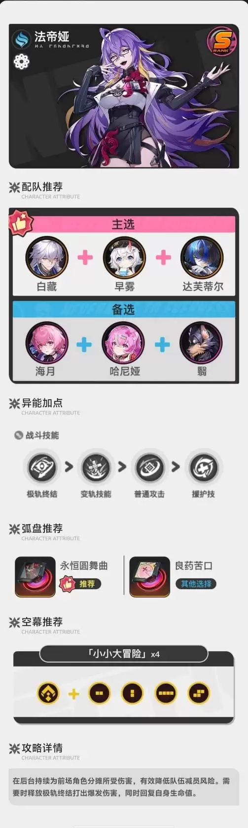 当然,构建强力队伍不止一种思路。除了法帝娅,你也可以参考这些热门角色的攻略:哈索尔配队与出装选择推荐、达芙蒂尔配队与出装选择推荐,或是深入了解九原全面培养指南。