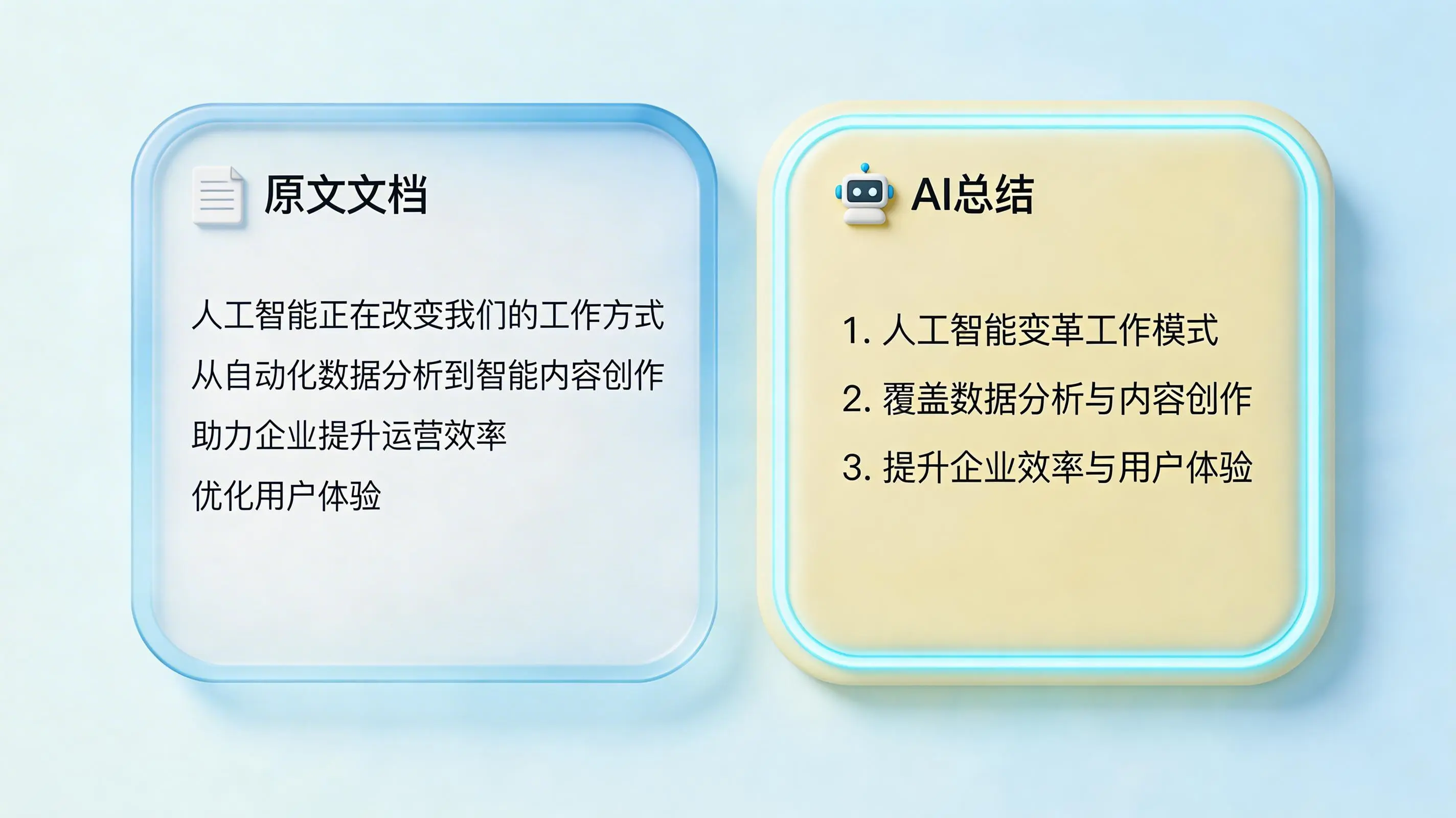 网页一键总结:面对动辄数千字的行业报告或深度新闻,无需再逐字阅读。只需点击工具栏上那个醒目的图标,Kimi Claw便能快速为你生成一份结构清晰、要点突出的摘要,省时又省力。