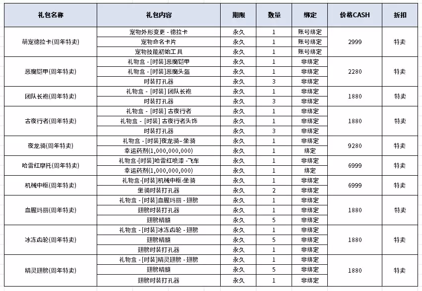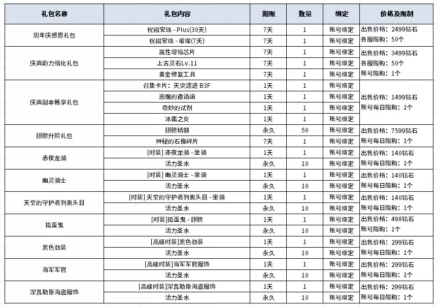 1. 本次活动出售道具均为角色绑定,且存在使用期限;