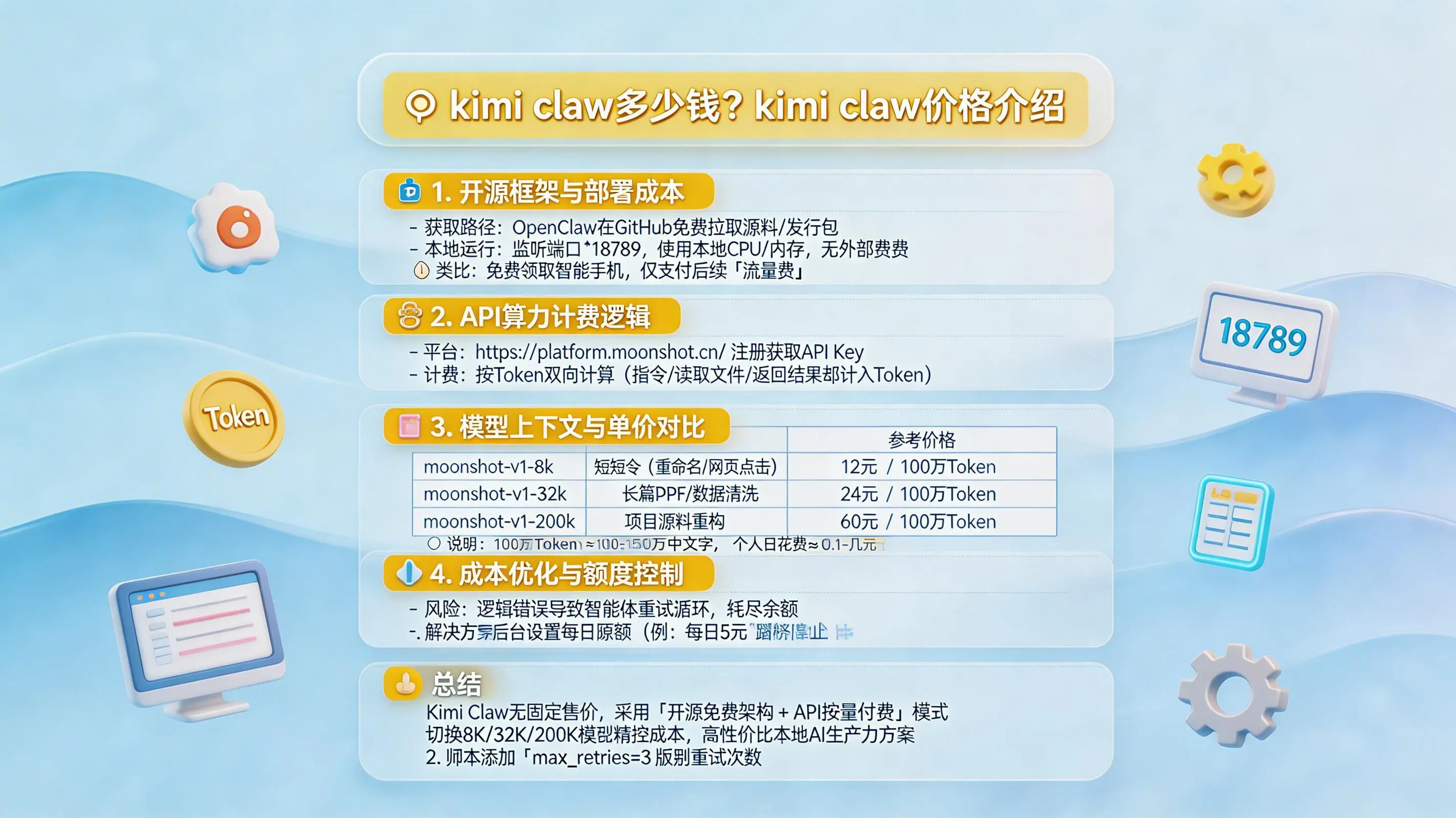 梳理下来,Kimi Claw的成本图谱就非常清晰了。它摒弃了一锤子买卖或周期性订阅的商业模型,转而采用了一种更极客、更精细的“开源免费架构 + API按量付费”模式。用户通过免费获得软件本体,再根据实际任务复杂度,在配置文件中选择8K、32K或200K等不同规格的模型,从而实现对每一次自动化任务成本的精确把控。这套组合拳,无疑为追求高效与性价比的个人及团队,提供了一套极具吸引力的本地AI生产力解决方案。