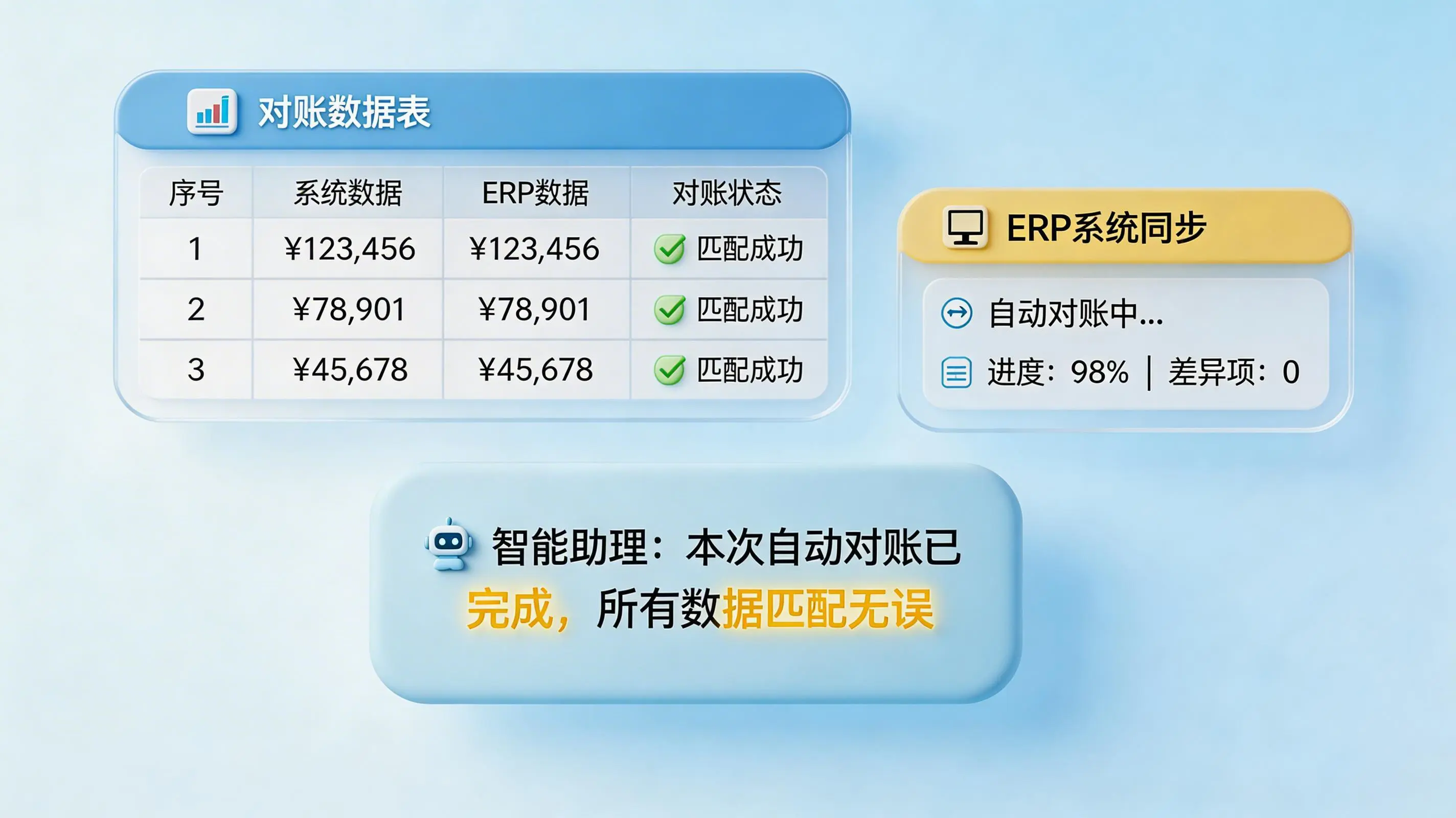 诚然,市面上许多ERP系统都自带基础的对账功能。但在现实业务中,数据往往散落各处:最新BOM表在飞书或钉钉群聊里,库存数据在传统ERP里,部分供应商的到货信息可能还在网页端。这时,传统软件封闭的架构就显得“鞭长莫及”。