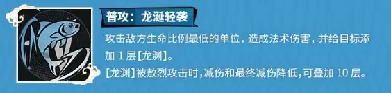 理解傲烈,得先从他的普攻“龙涎轻袭”说起。这个技能有个聪明的设定:每次都会自动攻击场上血量比例最低的目标。这不仅仅是造成法术伤害那么简单,关键在于每次攻击都会为目标叠加一层“龙渊”效果。这个“龙渊”就是傲烈战斗体系的核心之一,层数越高,目标在面对傲烈攻击时的减伤效果就越差,最高可叠加10层。所以,战斗前期的任务很明确——尽可能地把“龙渊”层数堆起来,为后续的爆发铺平道路。