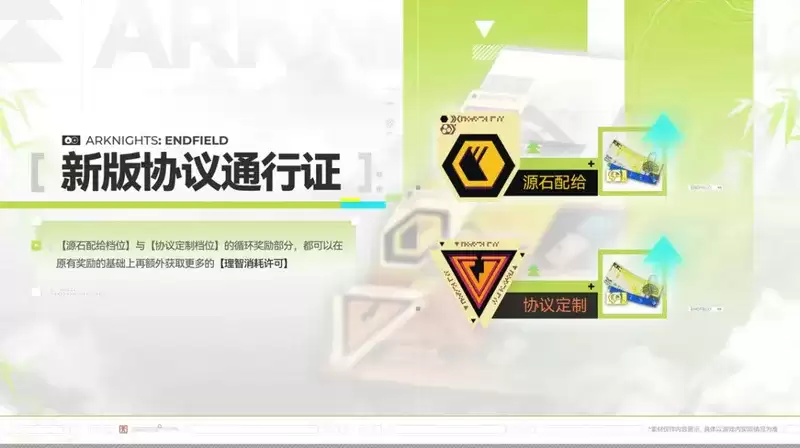 协议通行证也迎来了内容扩充。新版通行证中加入了理智消耗许可作为奖励,同时,无论是源石还是定制档位的奖励数量都有所提升。这对于玩家的日常养成而言,无疑是个好消息,能进一步减轻资源获取的压力。