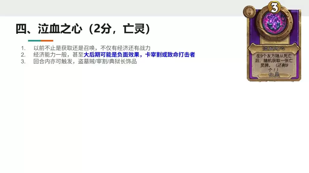 当然,它也有明显的局限性。首先,它只能作用于一个随从,在后期全员大哥的场面里,收益集中但覆盖面有限。其次,复生效果怕“圣盾”,更怕直接移除类的效果(比如“剧毒”配合先手)。所以,它的强度非常依赖阵容搭配和对局环境。在偏重中期节奏、依赖关键随从发挥的阵容里,它是当之无愧的神器;但在追求极致身材、以量取胜的流派中,可能就显得有些鸡肋了。