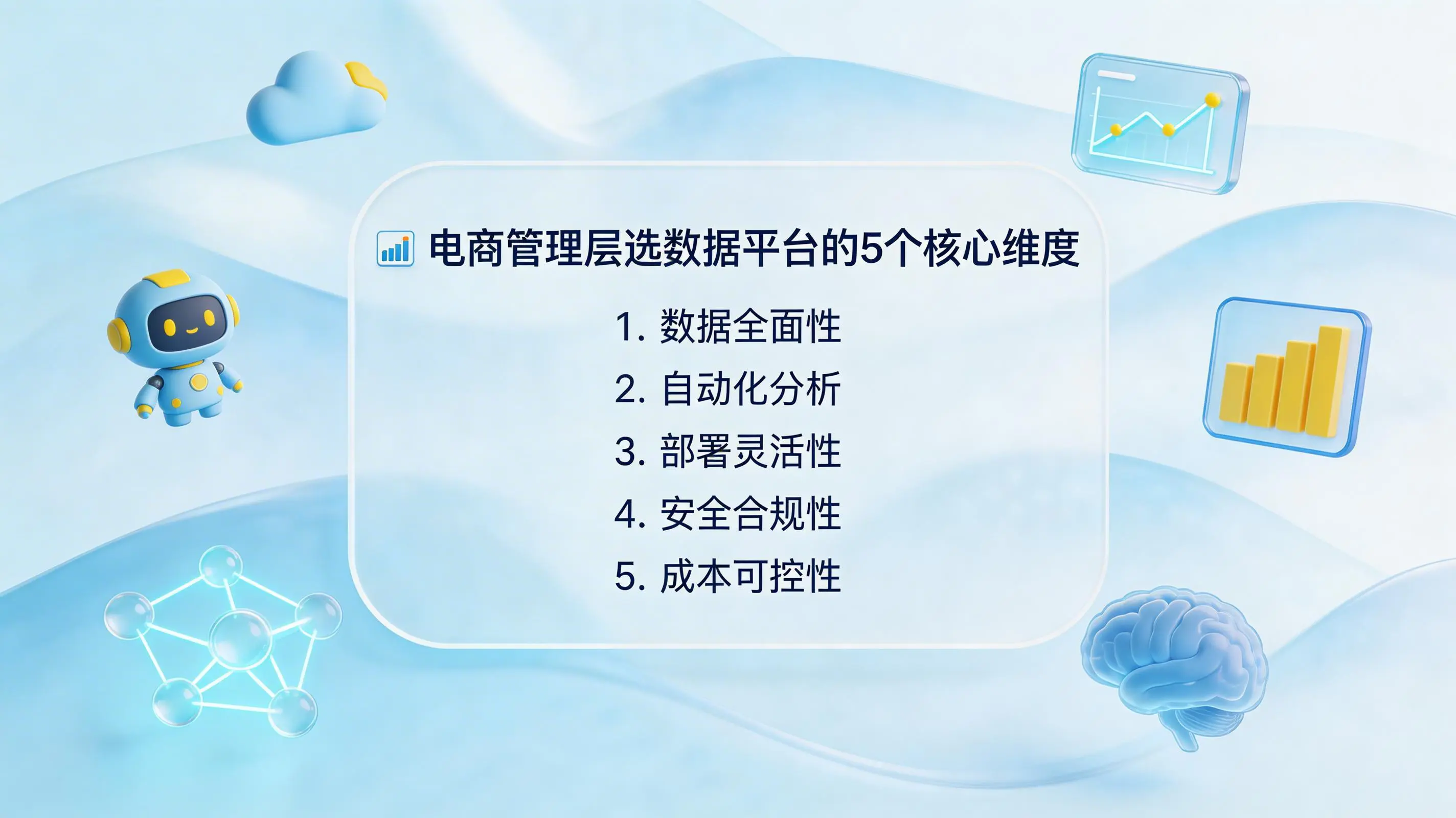 眼下,电商的竞争早已进入存量时代,增长逻辑也随之变了天——从追逐流量的“跑马圈地”,转向了深耕数据的“精耕细作”。对于管理层来说,选择一个数据平台,早已不是简单的技术采购,而是一场关乎未来竞争力的战略决策。面对来自各个平台、汹涌而来且格式各异的数据洪流,到底该如何评判一个平台的成色?今天,我们就来深度拆解电商管理层在选择数据平台时,必须盯紧的五个核心维度,帮你的企业构建起真正坚实的数据底座。
