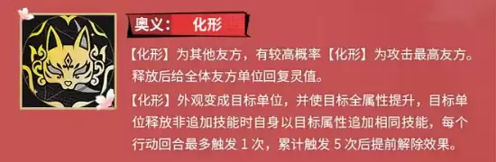 接下来是核心技能,奥义“化形”。这个技能的设计堪称巧妙:九月会幻化为当前攻击属性最高的队友外观,并提升该队友的全属性。但精髓远不止于此。在化形期间,每当目标队友释放非追加技能时,九月会以其属性追加释放一次相同技能,相当于一次高质量的技能复制。当然,这个强力效果有其限制:每回合仅触发一次,且累计触发五次后化形状态便会结束。因此,如何精准搭配队友,确保在化形期间触发的是最具战略价值的高伤害或关键技能,而非浪费在普通攻击上,就成了操作九月的关键所在。此外,释放化形时附带的全体灵值回复,在节奏紧凑的战斗中,往往能起到扭转局势的微妙作用。
