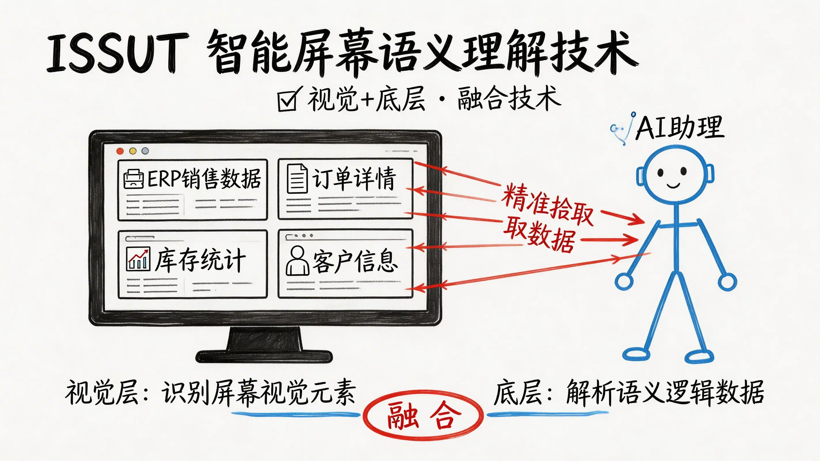 同样是“龙虾”,能力却有云泥之别。那些仅具备逻辑推理能力的普通产品,与实在智能打造的实在Agent相比,技术上存在显著的代际差异。关键在于后者搭载了其独有的ISSUT智能屏幕语义理解技术。这项技术,可以说为数字员工装上了一双真正能“理解”环境的“慧眼”。