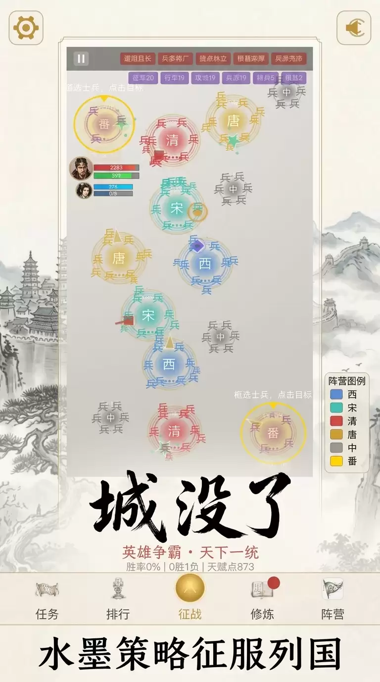 《城没了》是一款颇具特色的水墨风格Roguelike策略游戏。它的核心体验可以概括为“开局一座城,小兵无限造”。玩家需要招兵买马,攻城拔寨,依靠智谋与策略来征服列国,最终达成统一天下的霸业。