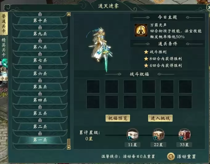 (6)若对当前获得的祝福效果不满意,可以选择重置活动,重新挑战以争取更高的星级评价;