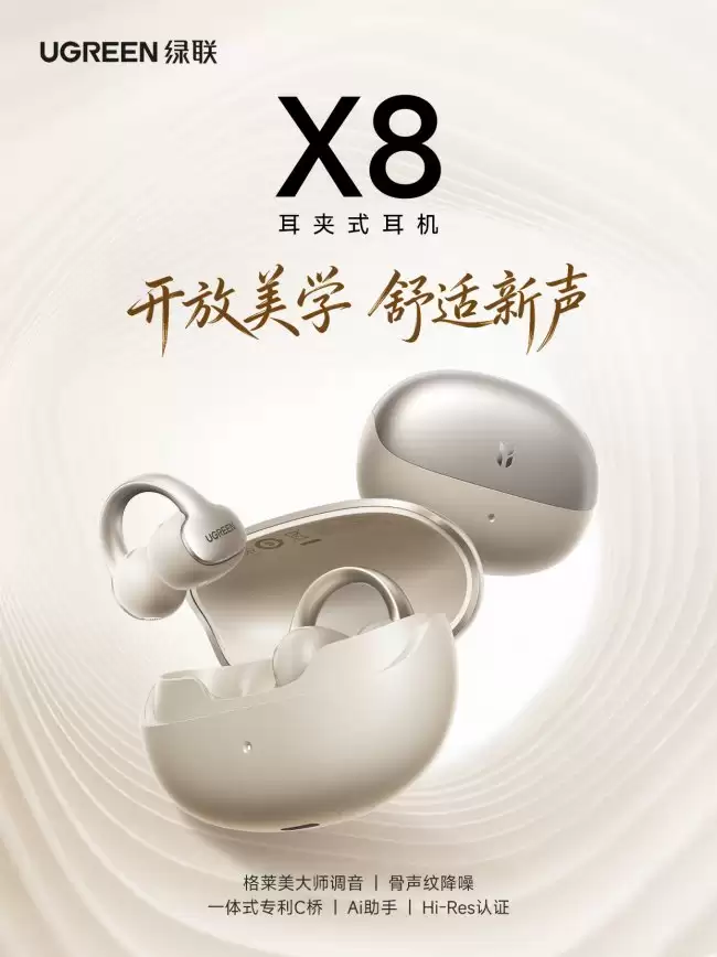 399 元绿联 X8 耳夹式耳机发布:VPU 骨声纹降噪 Hi-Res 金标认证 + 格莱美大师联合调音