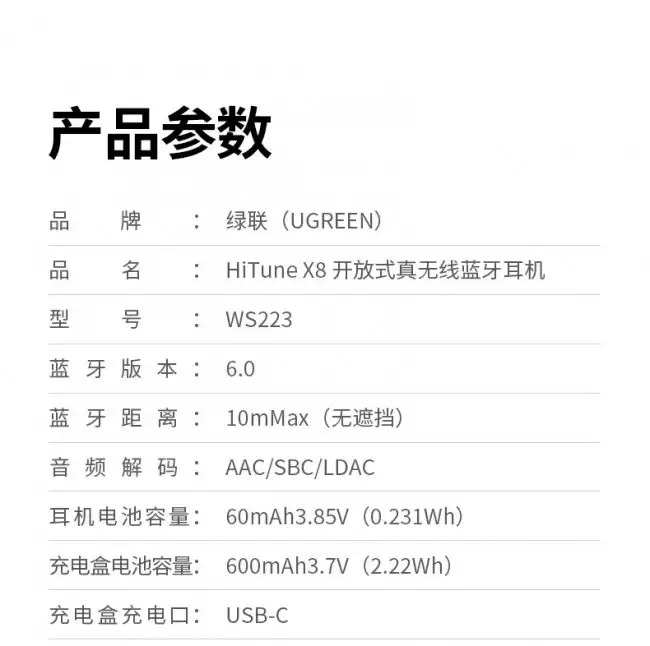 以下是这款耳机的详细参数一览: