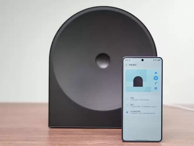 连接电视时,三星Music Studio 5画境艺术音响5系的Q交响乐功能会开始发挥作用。它能智能分析播放场景,识别三星电视和音响的相对位置,并进行精准校准和同步发声。需要注意的是,Q交响乐功能可兼容2024-2026年款的三星电视。