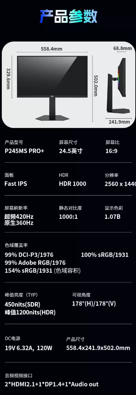 泰坦军团P245MS PRO+显示器正式发售:24 5英寸2K 420Hz Mini LED,售价2276元 电竞显示器市场又添一员猛将。泰坦军团旗下新款“P245MS PRO+”24 5英寸显示器现已正式开售。这款产品最引人注目的,莫过于其搭载的24 5英寸2K分辨率、420Hz超高刷新率Mini