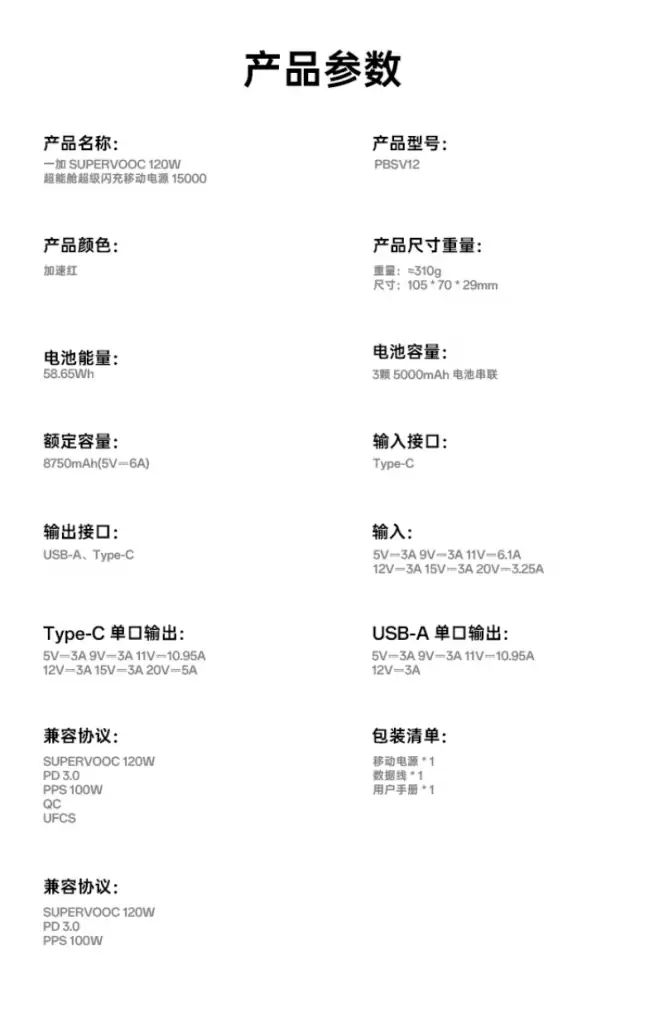 一加 SUPERVOOC 120W 超能舱移动电源发布:1A + 1C 15000mAh 电芯 售 299 元