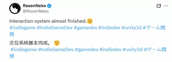 最近,独立游戏&开发者RasenNeko在社交平台分享了一条动态,宣布其新作的交互系统已基本完工。随文附上的一段简短游戏演示,迅速吸引了近49万次观看,热度出乎意料。
