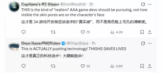 视频发布后,评论区迅速沸腾。不少玩家直言,这种在危急时刻能用角色大腿夹住武器、实现快速切换的交互设计,才是真正值得追求的“游戏真实感”——它关乎玩法与直觉,而非单纯堆砌角色面部的毛孔细节。